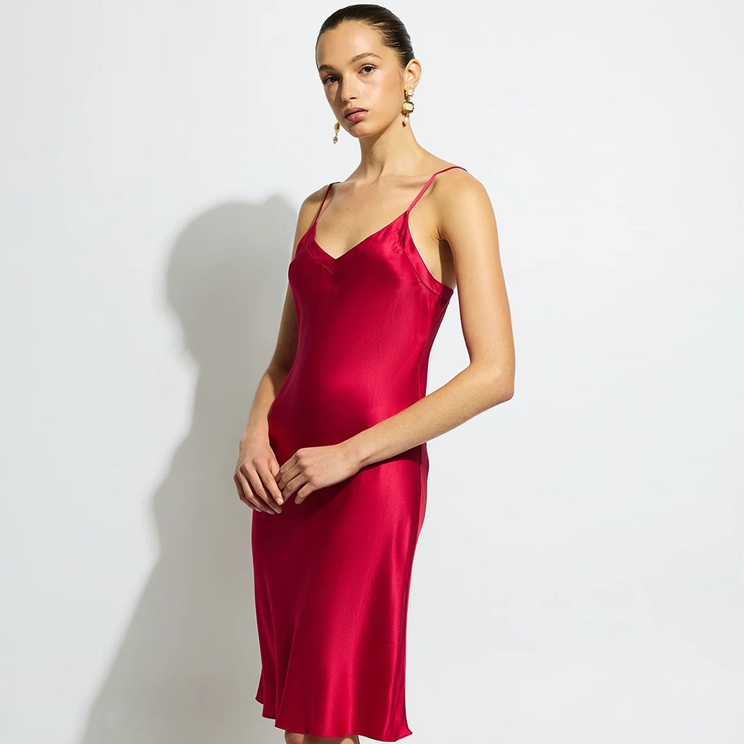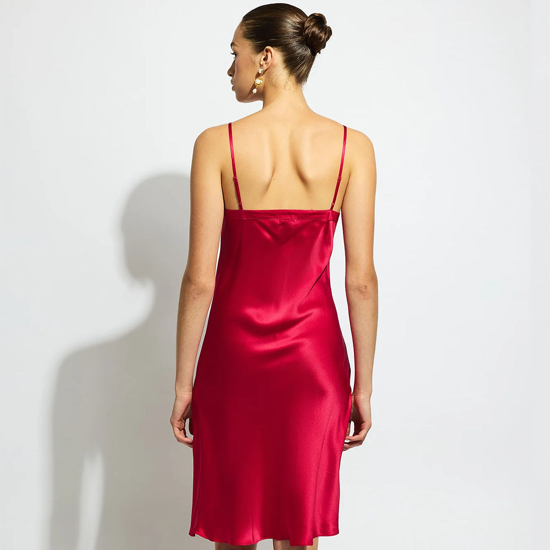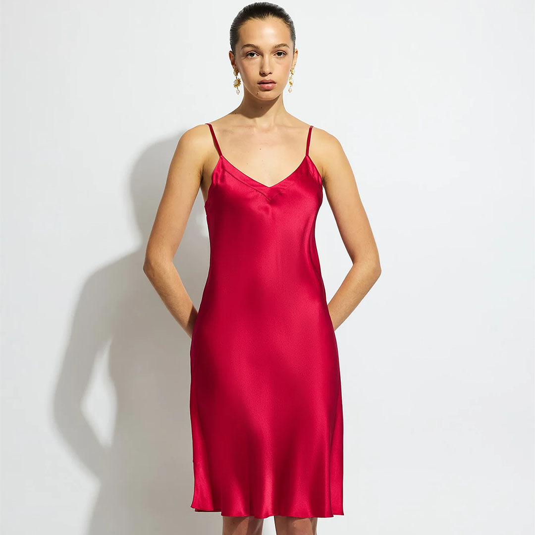 The Silk Nite Slip is a wardrobe staple. A bias-cut slip in 100% silk that falls to create a beautiful silhouette. Spaghetti straps from the same silk are adjustable for a perfect fit. A style that effortlessly transitions between sleep and street.