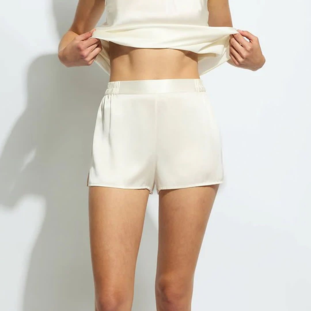 Silk Basics by GINIA are modern silk essentials designed for everyday wear — a thoughtfully curated collection of pieces that stand beautifully on their own or pair effortlessly together. The Silk Short offers a classic sleepwear silhouette with a contemporary finish, featuring a wide 1.5" waistband with elastic at the back and sides for a comfortable, easy fit. Gentle ruching through the elastic adds subtle volume, enhancing the natural drape and fluid movement of the silk.