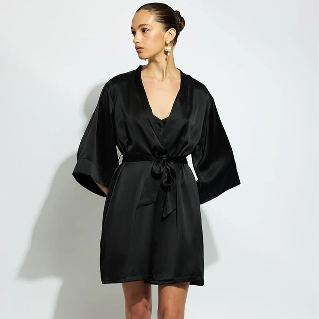 Echoing the timeless elegance of the GINIA woman, the Silk Wrap Robe offers a modern take on the classic dressing gown. This mini-length Silk Wrap Gown is crafted from 100% silk, draping beautifully to create a flattering silhouette. It features an inner ribbon for secure fastening and a wide silk sash for a refined finish. Part of the Silk Basics collection, it’s one of GINIA’s everyday essentials — thoughtfully designed pieces that stand beautifully on their own or pair effortlessly together.