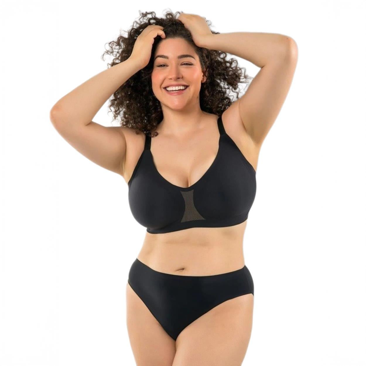 The Simplicity Seamless Plus Size Wirefree Bra is a modern, seamless bralette designed for fuller busts. It combines removable padding for customizable shaping with the latest, support-enhancing bonded technology under the bust to deliver a smooth, lifted shape and exceptional all-day comfort without wires. It provides a sleek, smooth fit under clothing. Adjustable, convertible shoulder straps allow you to wear it as a crossback bra for versatile styling, while a modern cut-out detail at the center adds a contemporary touch.