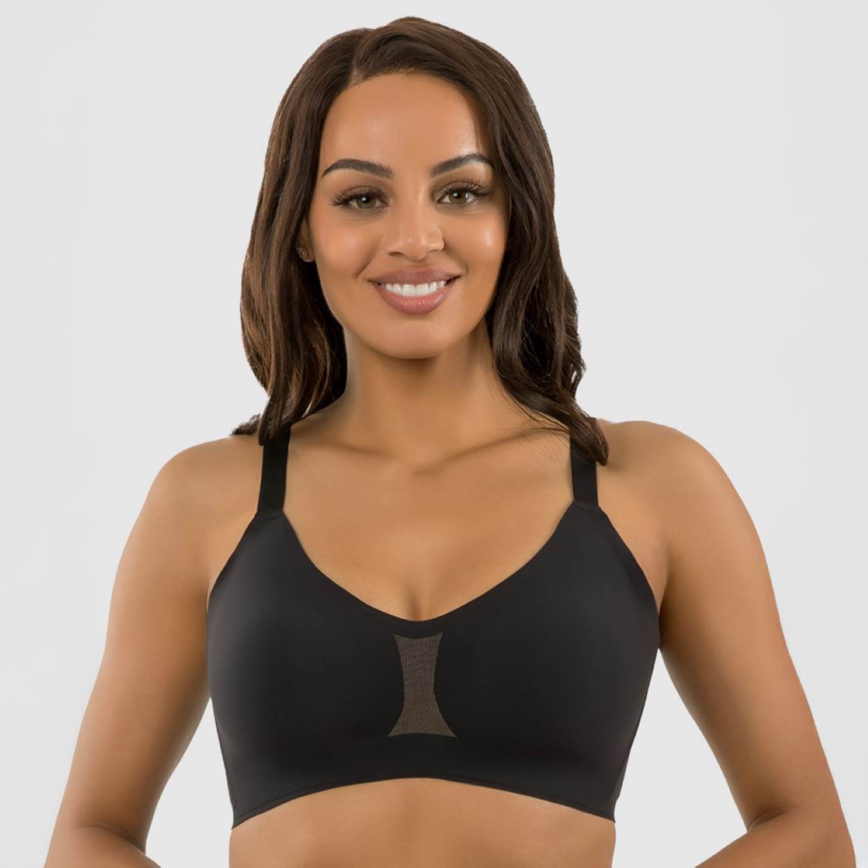 The Simplicity Seamless Wirefree Bra is a modern, seamless bralette designed for fuller busts. It combines removable padding for customizable shaping with the latest, support-enhancing bonded technology under the bust to deliver a smooth, lifted shape and exceptional all-day comfort without wires. It provides a sleek, smooth fit under clothing. Adjustable, convertible shoulder straps allow you to wear it as a crossback bra for versatile styling, while a modern cut-out detail at the center adds a contemporary touch.