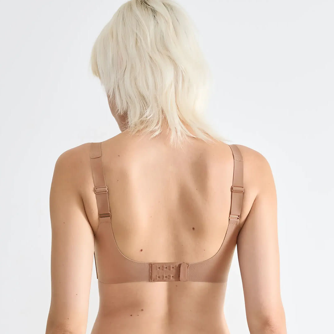A Sloggi ZERO Feel 2.0 Soft Bra with removable breathable cookies, firm support, and seamless 360° stretch recycled fabric featuring moisture-wicking Activated Silk™ technology for a smooth, invisible second-skin feel.