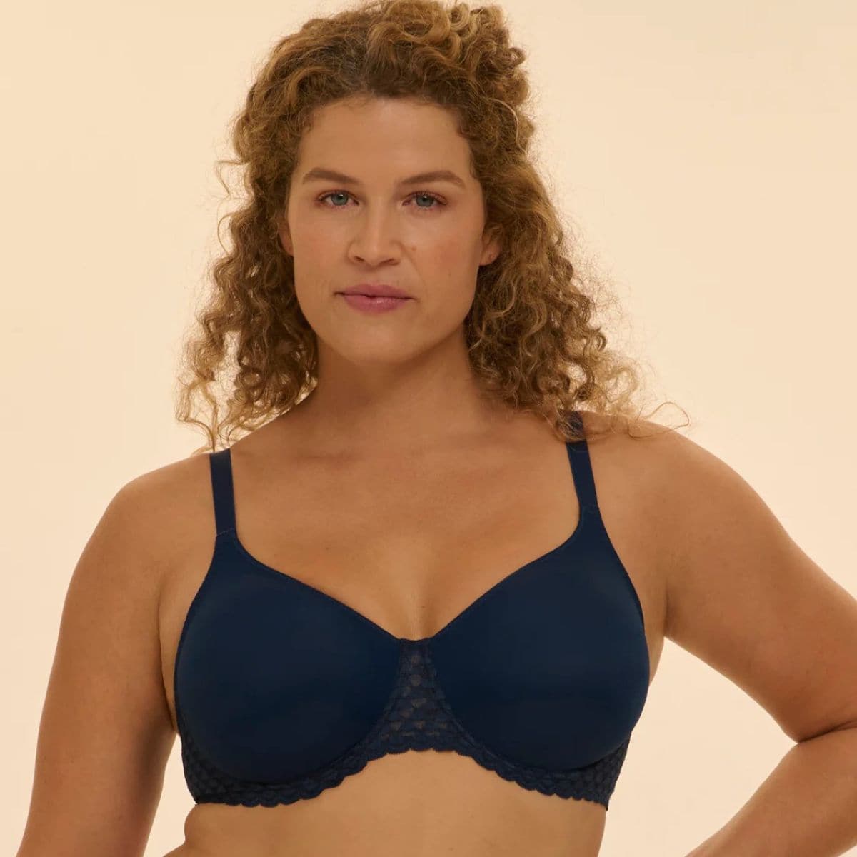 Seamless, moulded cups. Bust-controlling, minimiser effect. Excellent support. Underwired, without pads.