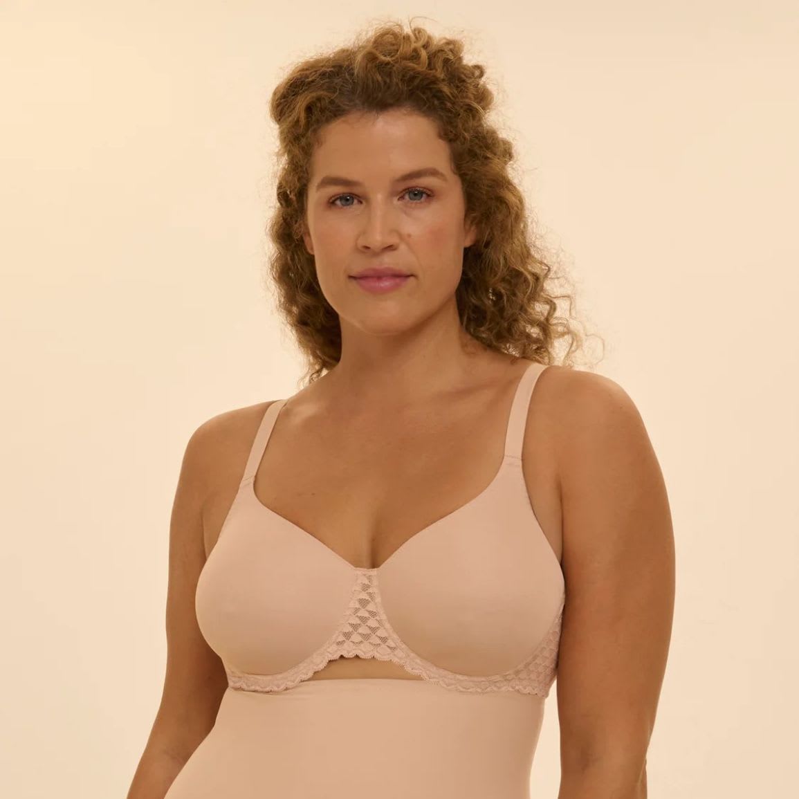 Seamless, moulded cups. Bust-controlling, minimiser effect. Excellent support. Underwired, without pads.