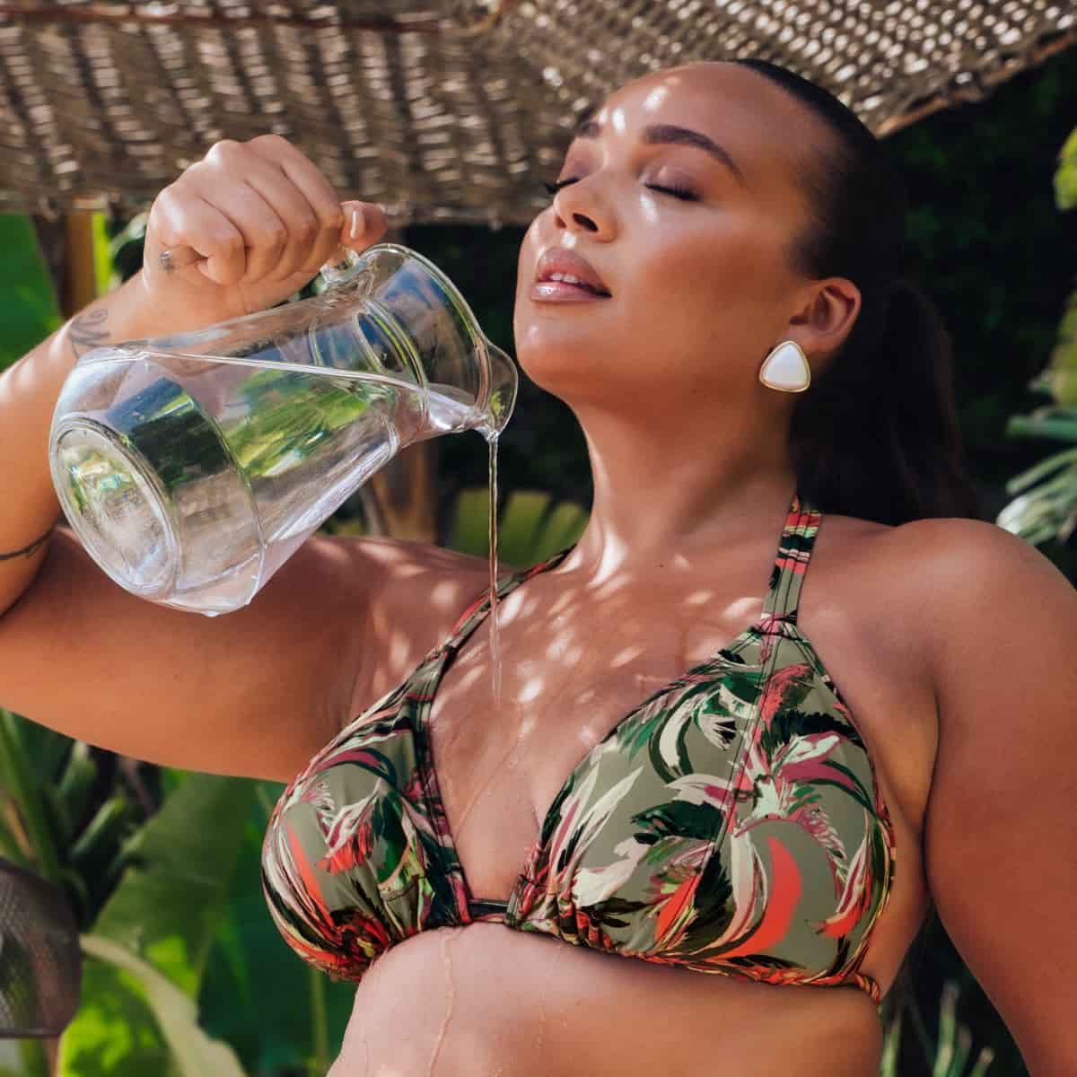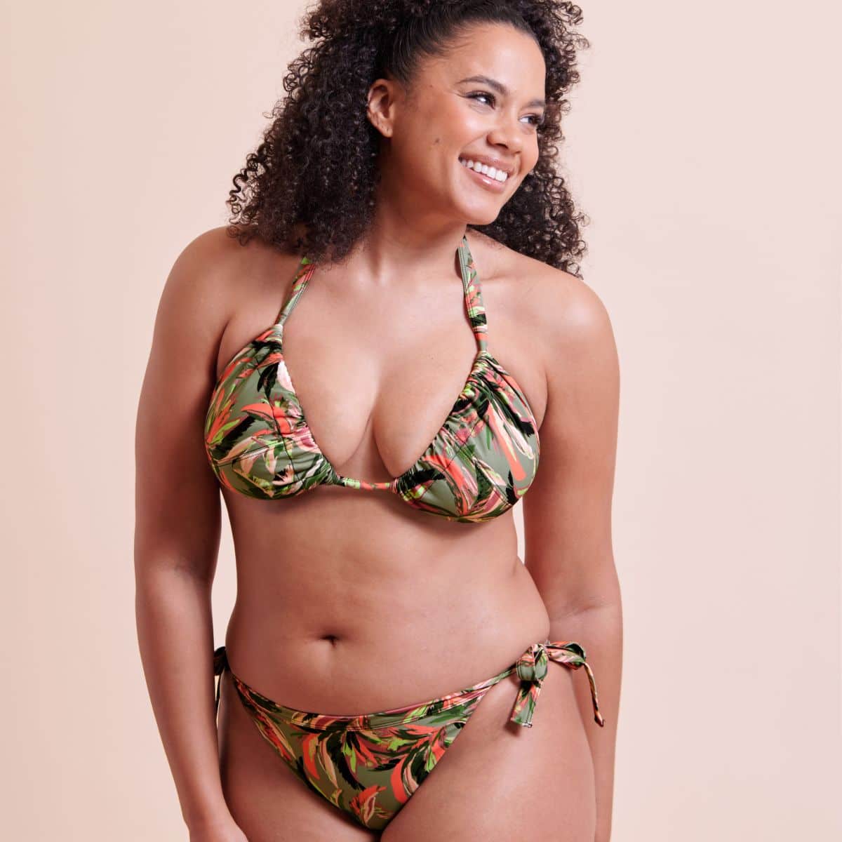 Abstract and vibrant palm leaves grace this gorgeous collection.Dual cup sizing. Non-wired string Bikini with multiway options.