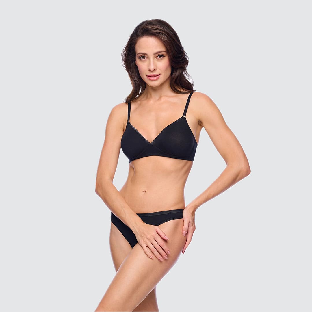 Talco Bralette is crafted from baby-powder soft, breathable micromodal fabric, this wireless, seamless triangle bralette offers effortless comfort and a natural fit. It features a supportive elastic underband, adjustable straps, and a hook-and-eye back closure for a personalized fit throughout the day.