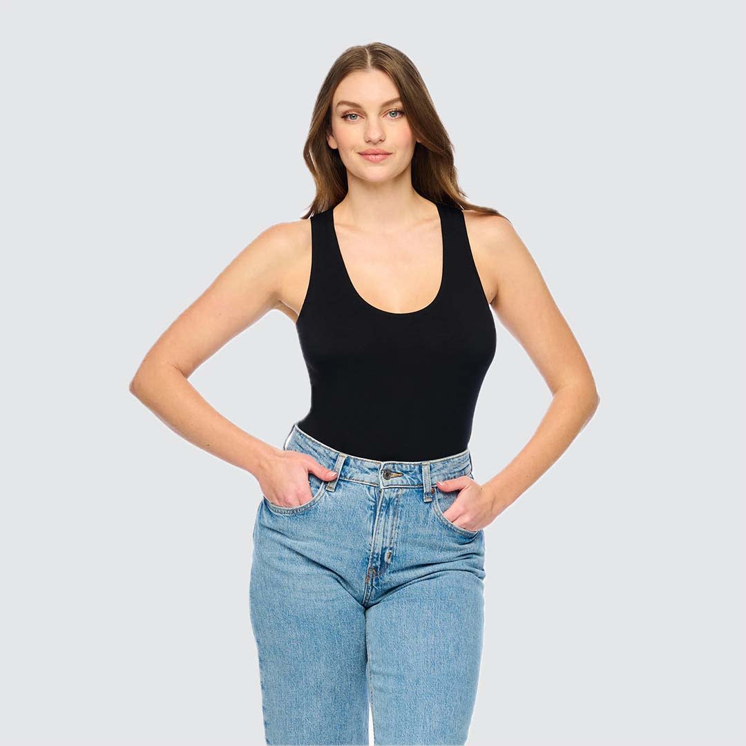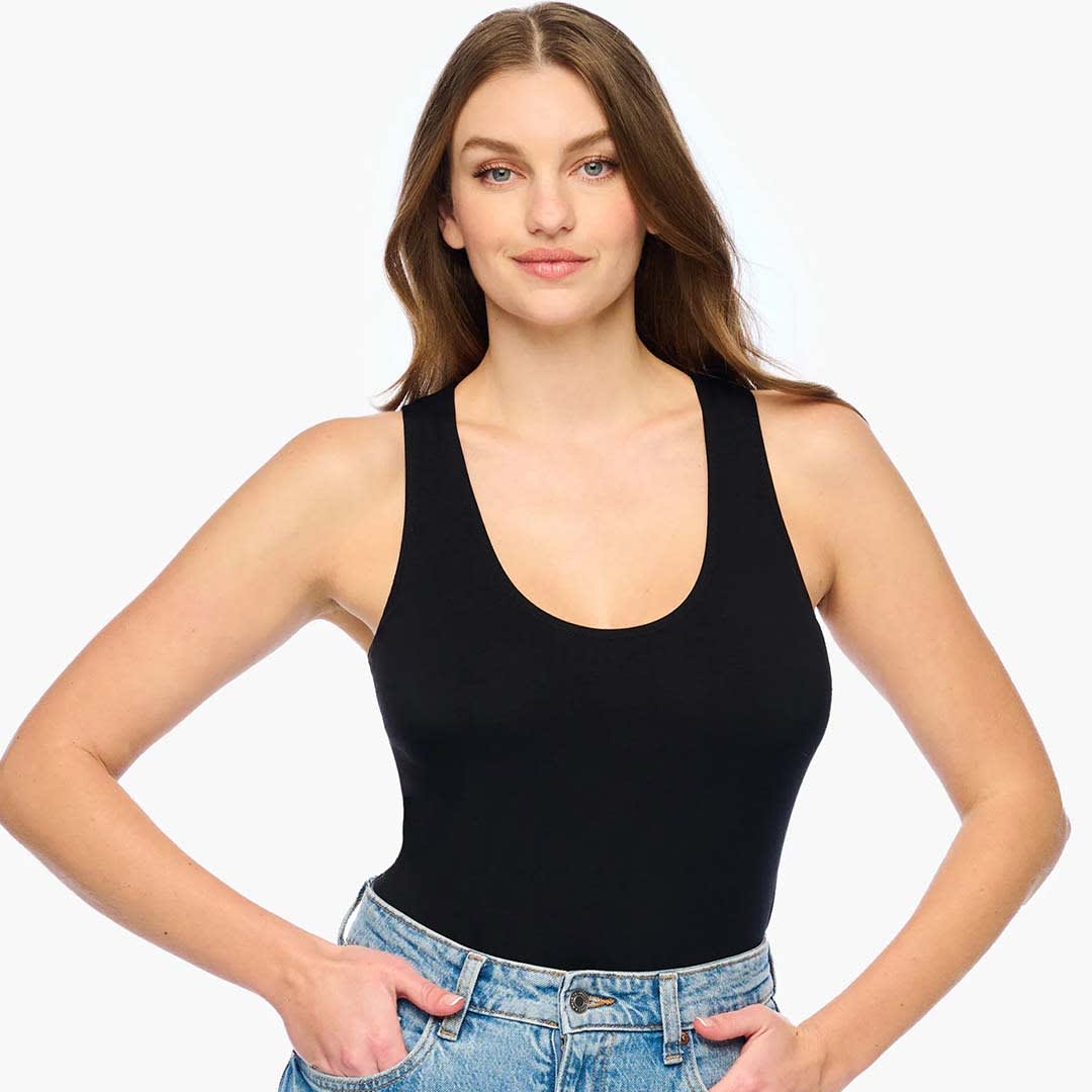 This Talco Curvy Racerback Camisole is designed for those with fuller busts and smaller bands. Made from soft, breathable, and luxurious viscose jersey, it features a fitted silhouette with a scoop neckline and built-in shelf bra for light support. The racerback design with wide straps ensures a comfortable fit and smooth finish. Machine wash on a delicate cycle to maintain its softness and shape.