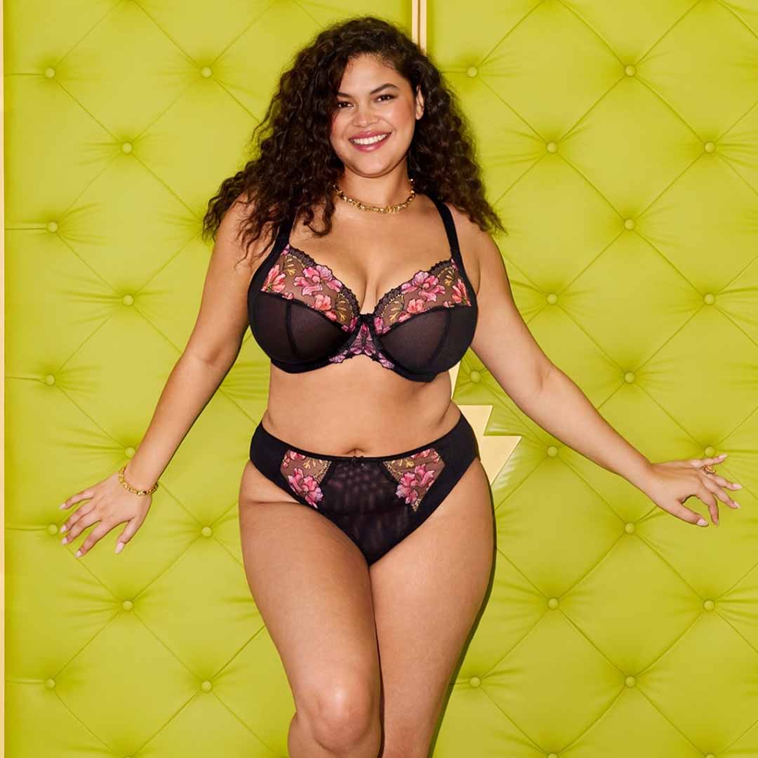 Double layer-stretch mesh front, sides and back for modesty. Precision printed embroidered front inset panels, with soft metallic yarn detailing. Smooth satin-look waist elastic. Bow detail at the centre front.