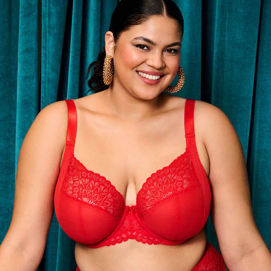 The low centre front of the Tiernie Stretch Plunge Bra offers a flattering plunge without push-up, while the powerful stretch lace top cup provides a rounded shape and flexible fit, finished with a smooth neckline, a soft foldover elastic underband for all-day comfort, and a floating lace gore that ensures a no-dig feel.