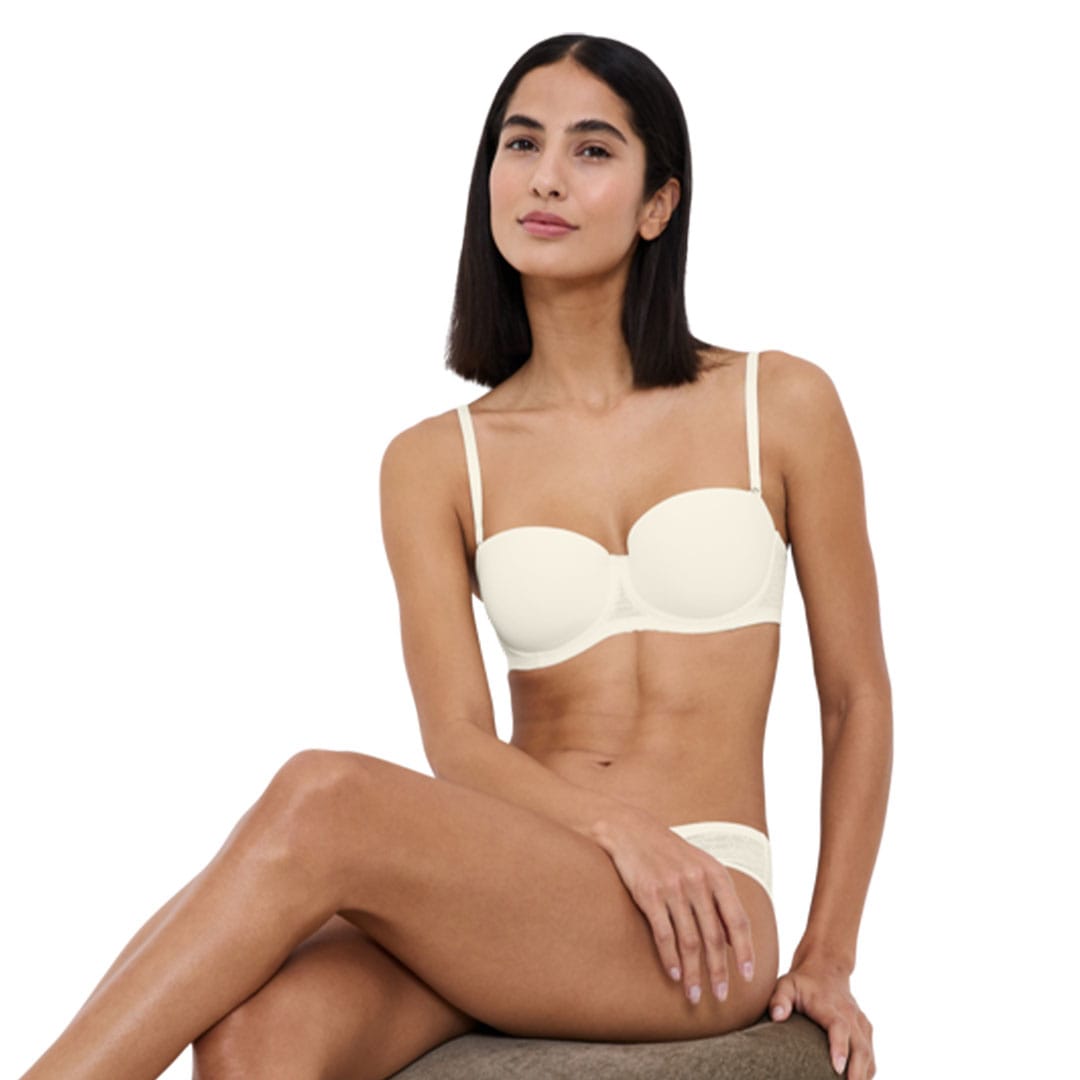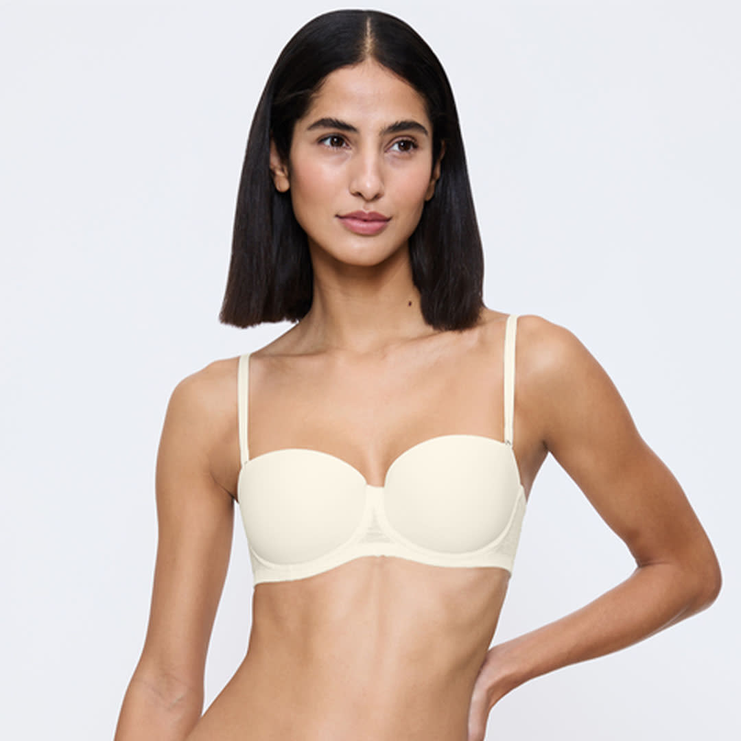 The high-coverage Triumph Signature Sheer Wired Bra with detachable straps for versatile wear, featuring a wider hook-and-eye for comfort, a plain round cup with clean finishing, silicone elastic at the bust for secure support, and smooth Jacquard mesh at the cradle and back for invisible, modern styling.