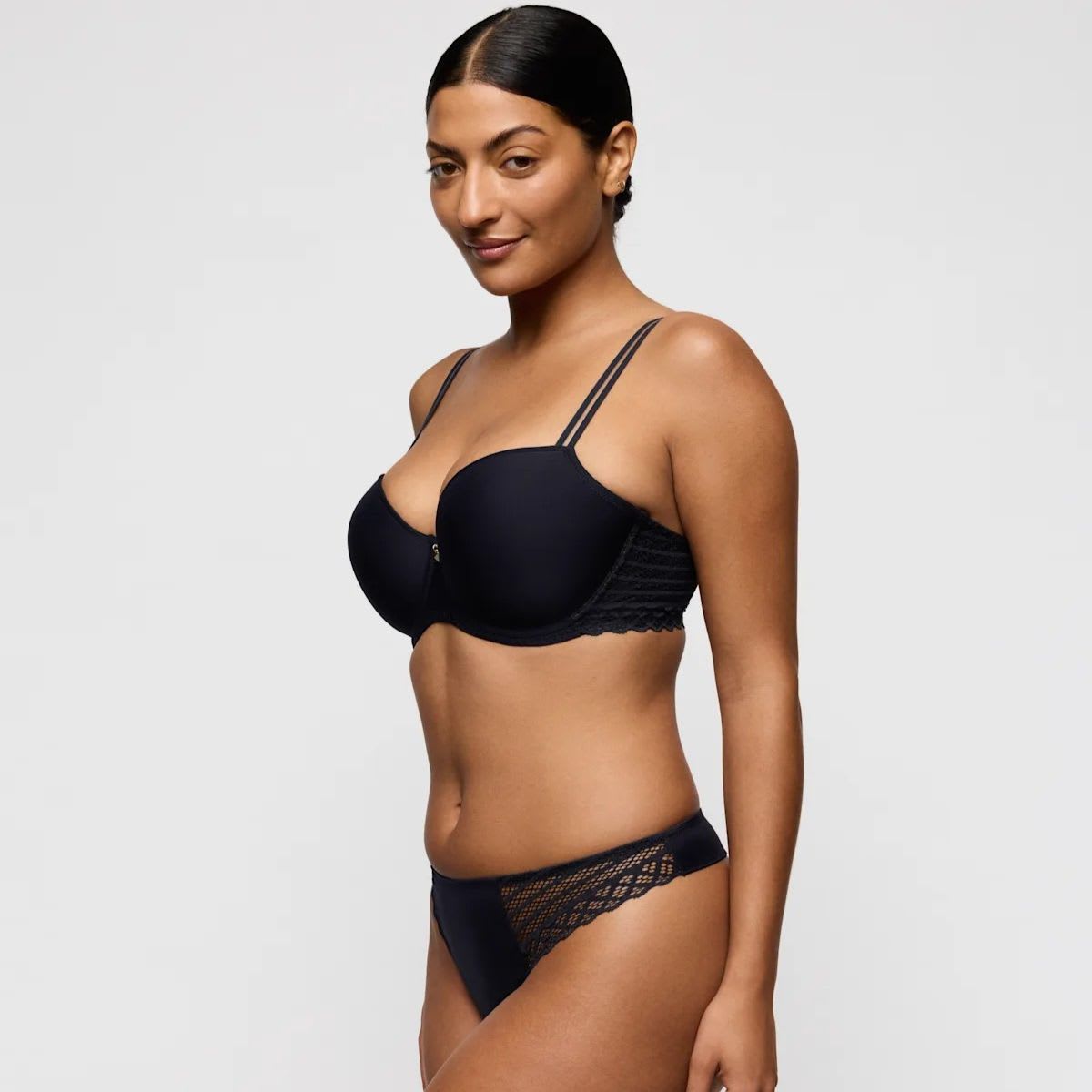 Smooth with graphic lace – your go-to T-shirt bra. Comfy padded wired bra. Stylish non-transparent design.