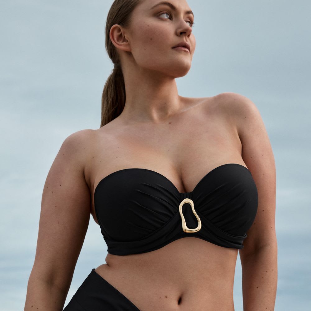 Padded strapless bikini top for a flawless, tanline-free glow.