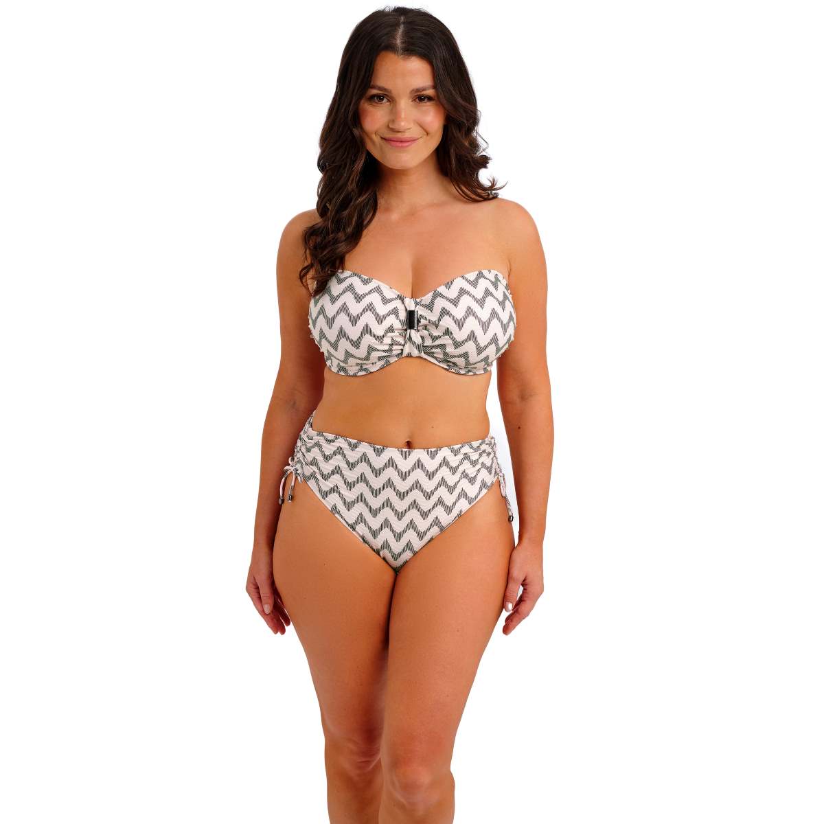 The Vanuatu collection offers timeless swimwear with a soft black and cream geometric design. Crafted from luxe textured fabric, it features lightly padded foam cups and concealed underwire for support, powernet-lined wings with a deep clasp, and fully adjustable, detachable multiway straps. Gunmetal-effect sliders at the centre front add style and won’t heat up in the sun.