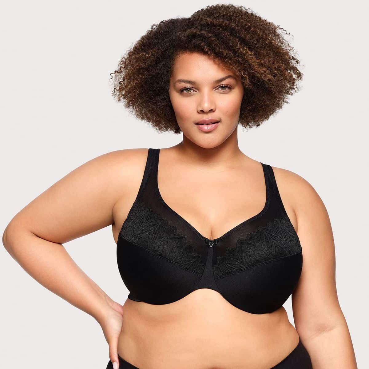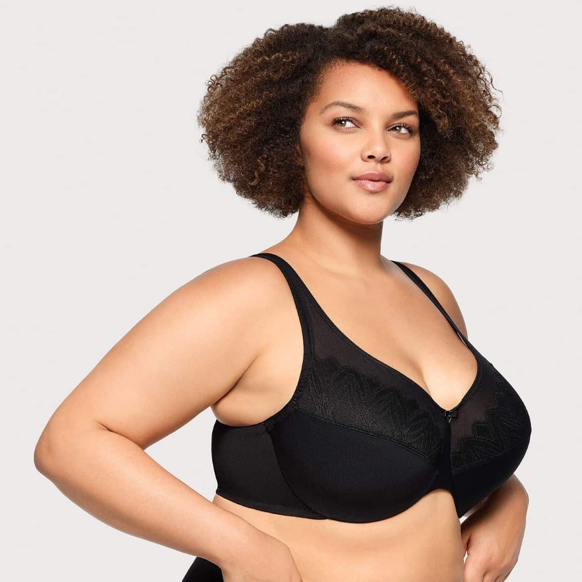 The underwire support you need meets the minimizing coverage you want. With sheer mesh and lace minimizer cups, this full coverage bra reduces bust projection by one inch for a beautiful fit under any top. Minimizer cups reduce bust projection by up to 1 inch.
